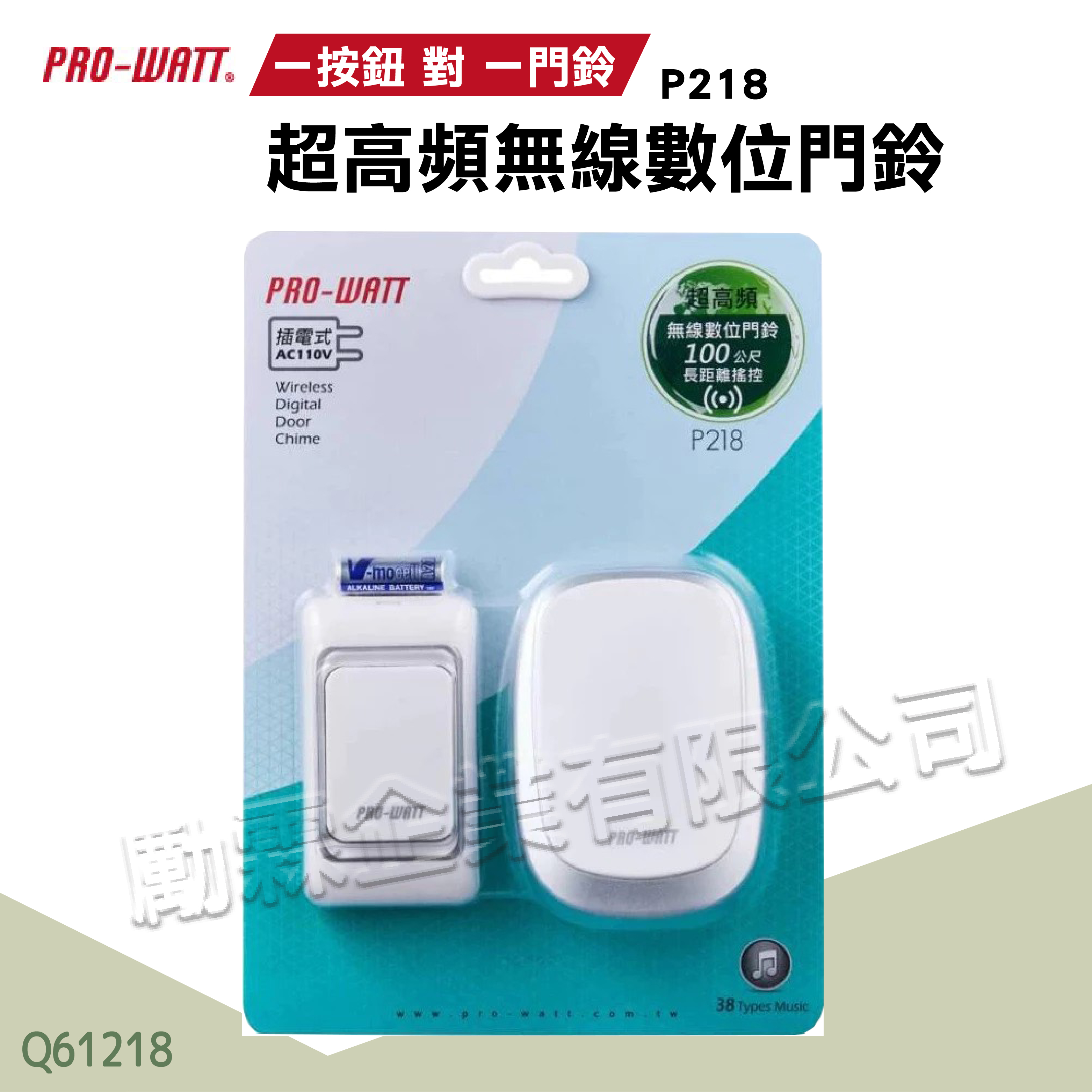 【PRO-WATT】一按鈕對一門鈴 無線數位門鈴 P218