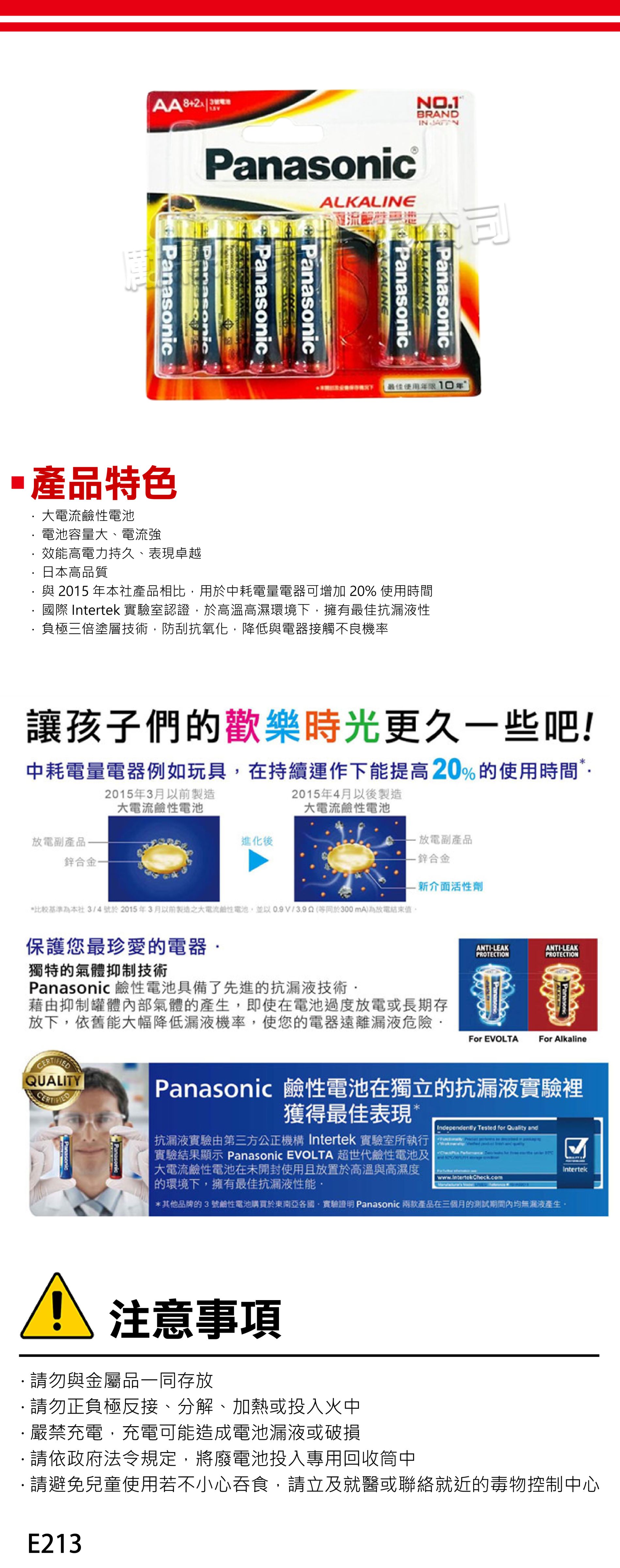 6. 請勿將電池拆解或焊接使用,不可充電的電池請勿充電,以免電池漏液或發生危險。