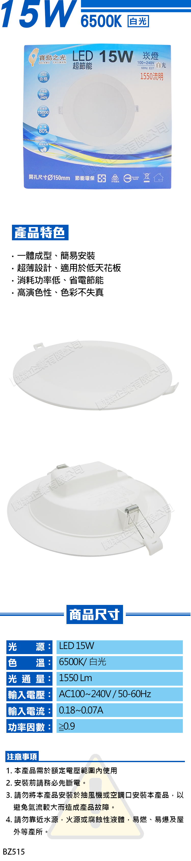 【寶島之光】LED 15W 超節能崁燈 - 白色