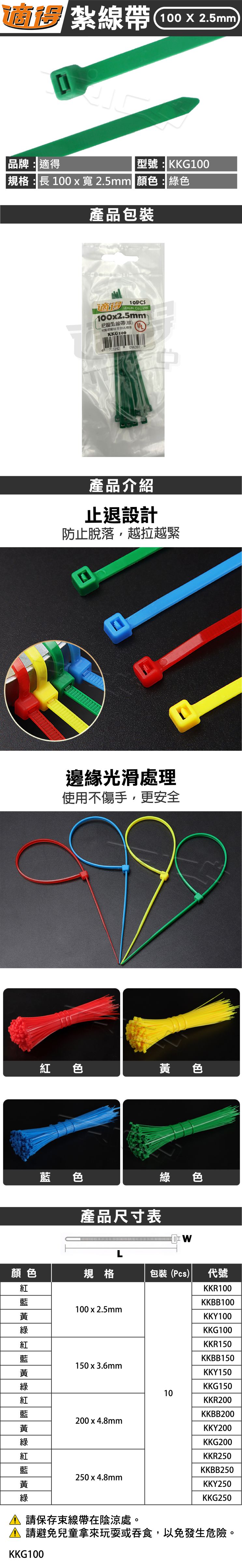 【適得】100 X 2.5mm 紮線帶 - 綠