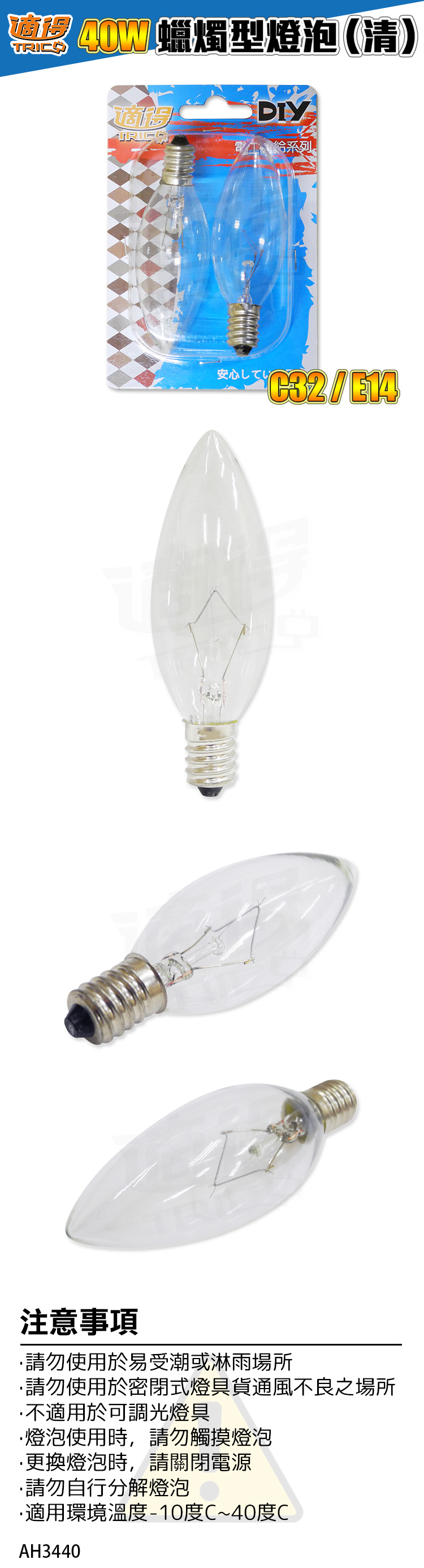 【適得】40W 蠟燭型燈泡 C32/E14 清光 (2入)