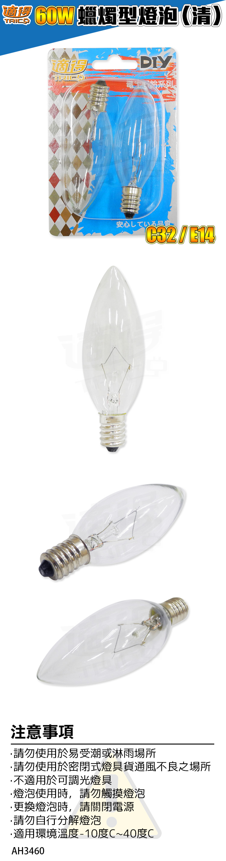 【適得】60W 蠟燭型燈泡 C32/E14 清光 (2入)