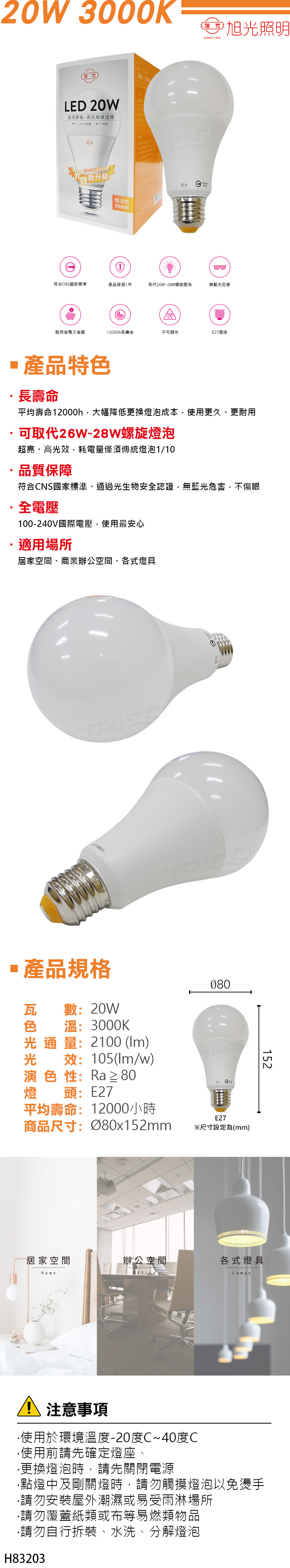 【旭光】LED 20W 球泡燈 - 燈泡色