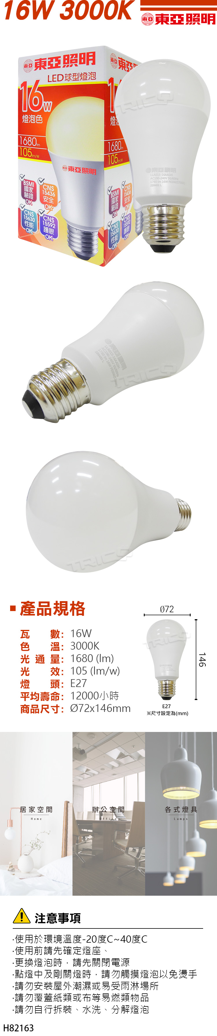 ‧請勿使用於密閉式燈具貨通風不良之場所