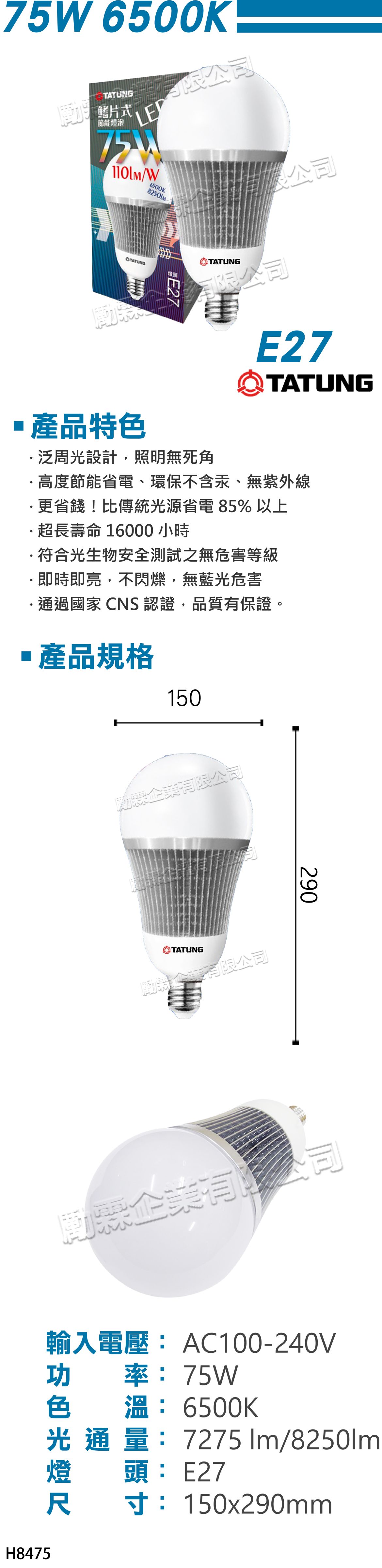 1. 規格:75W/白光