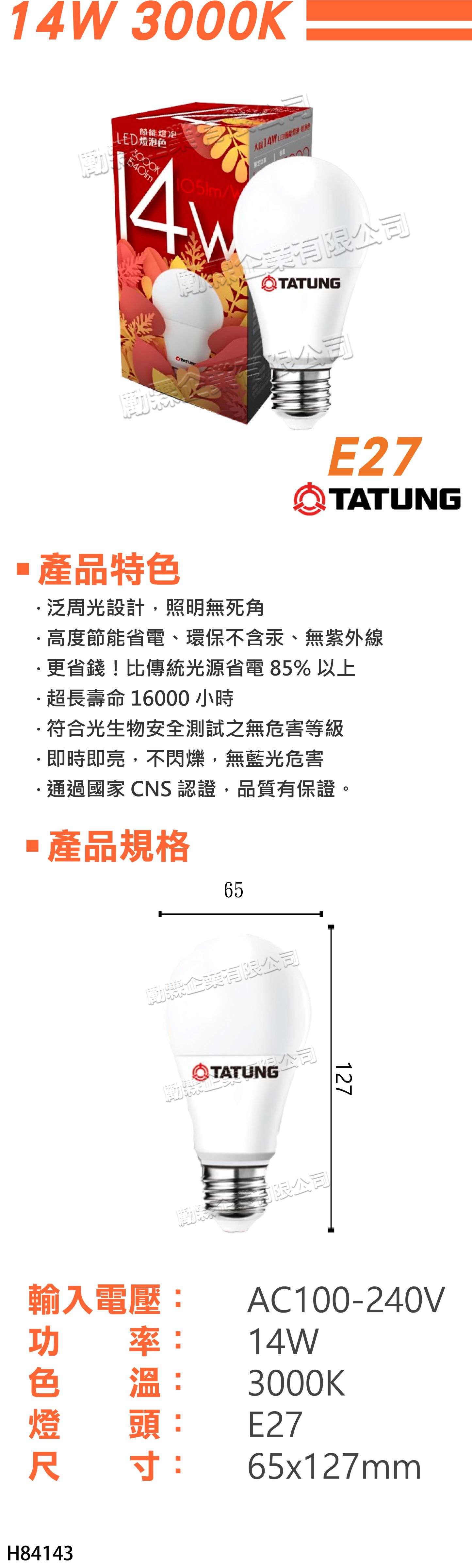 1. 規格:14W/黃光