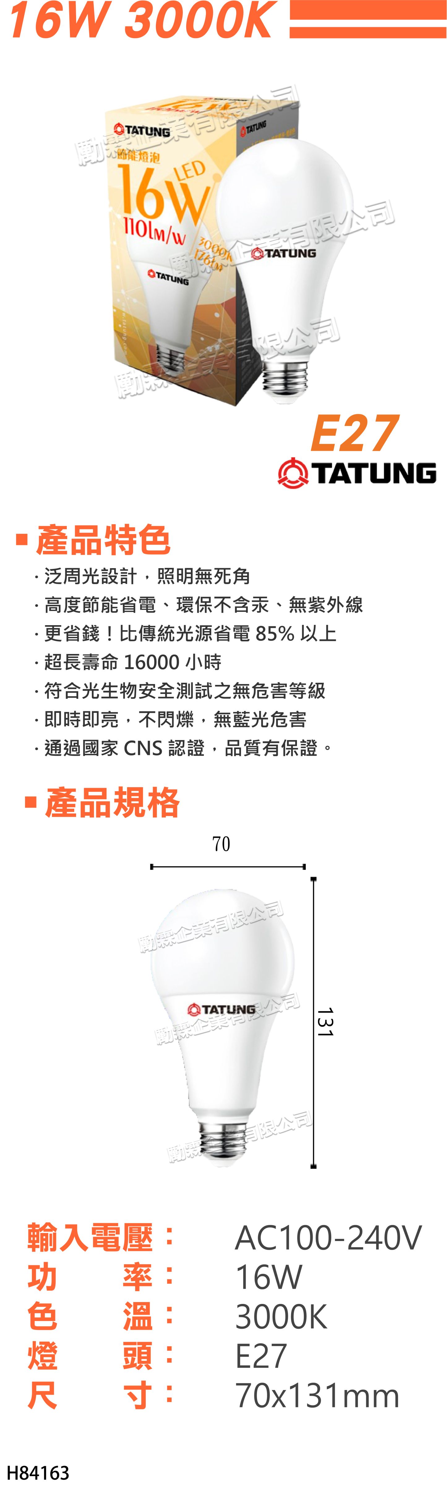 1. 規格:16W/黃光