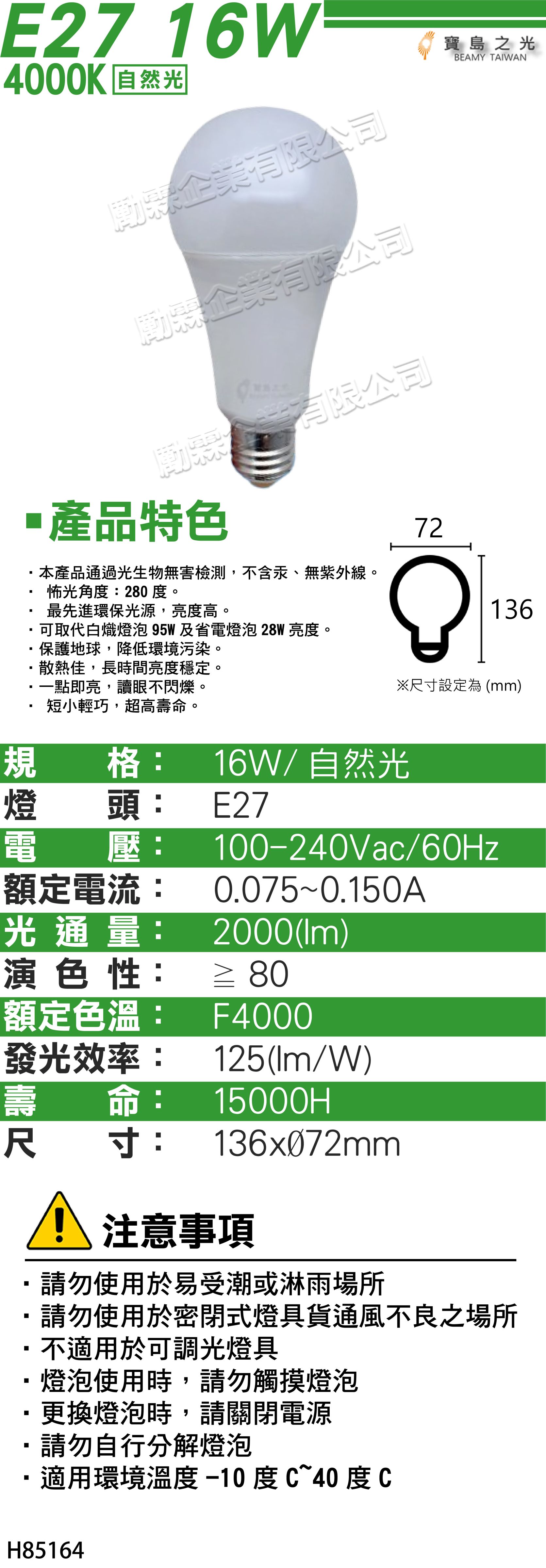 1. 規格:16W/自然光