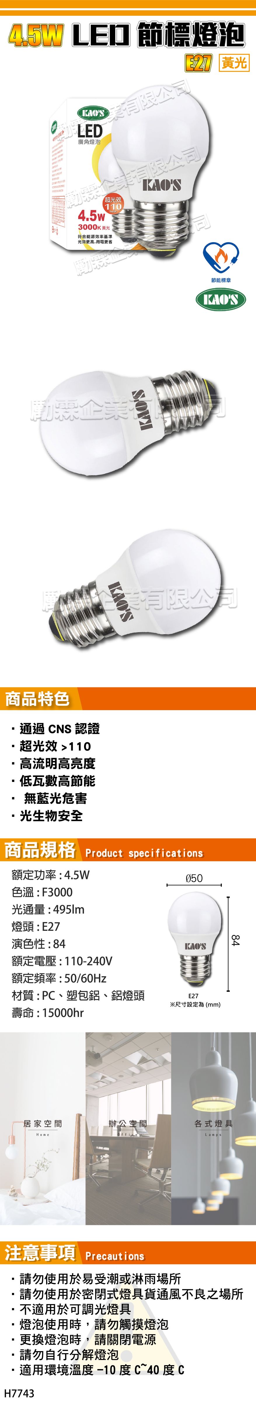 【KAOS】LED 4.5W 節標燈泡 - 黃光