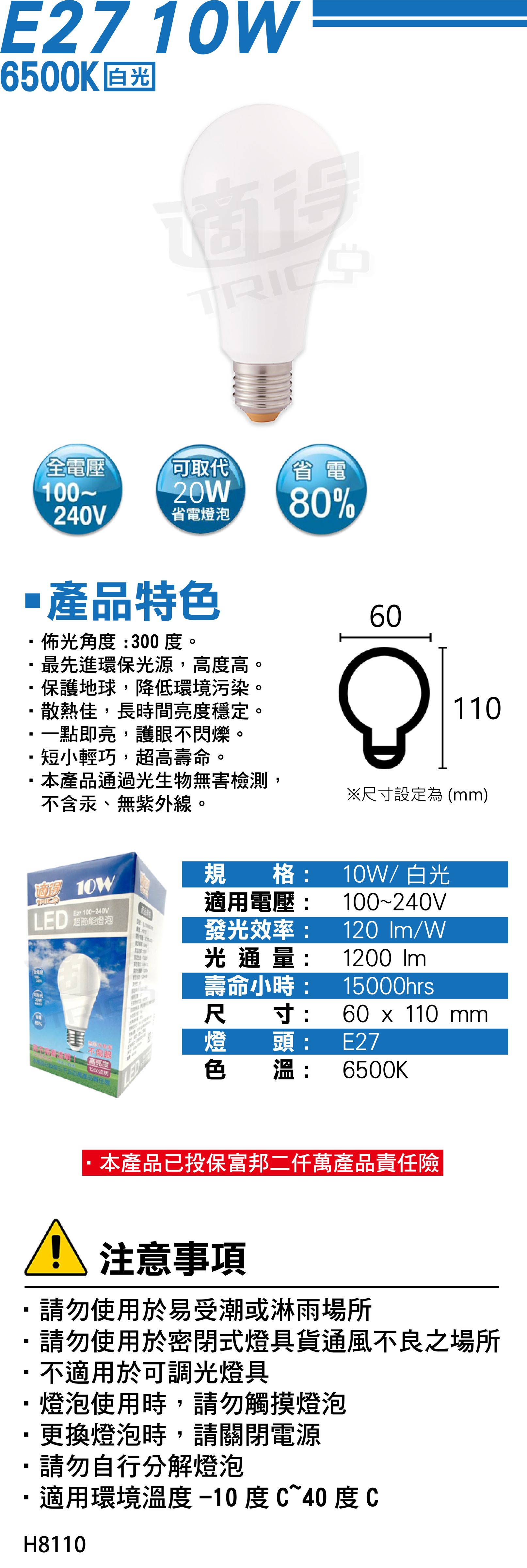 【適得】LED 10W 超節能燈泡 (白)