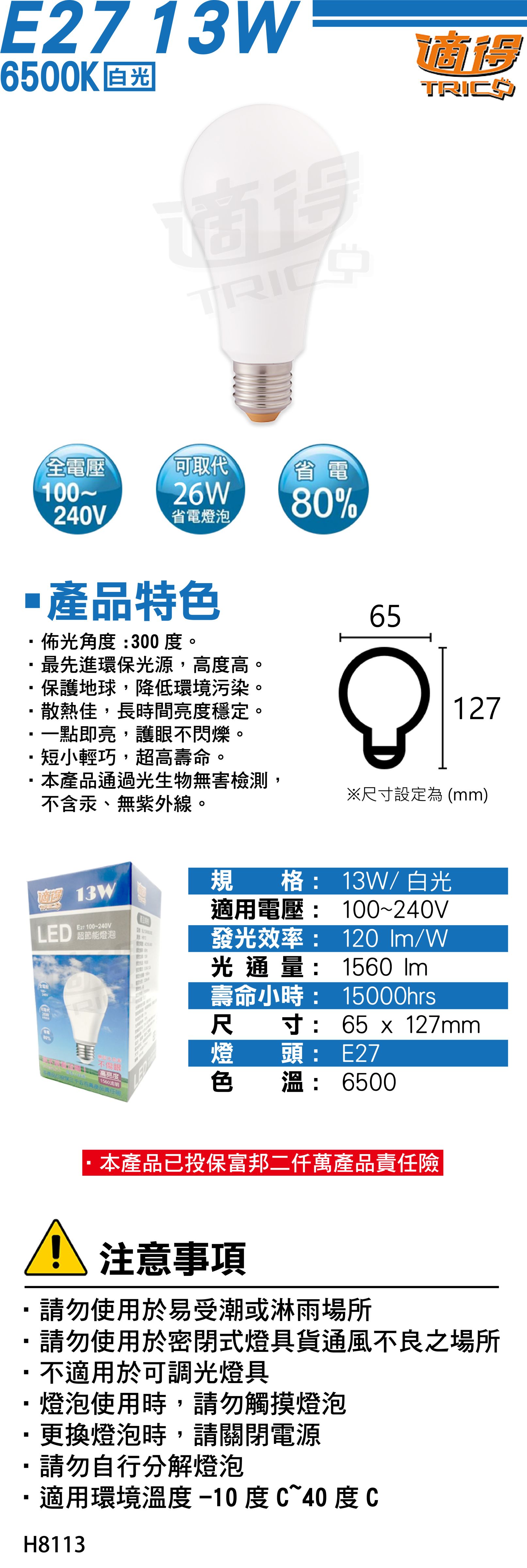 【適得】LED 13W 超節能燈泡 (白)