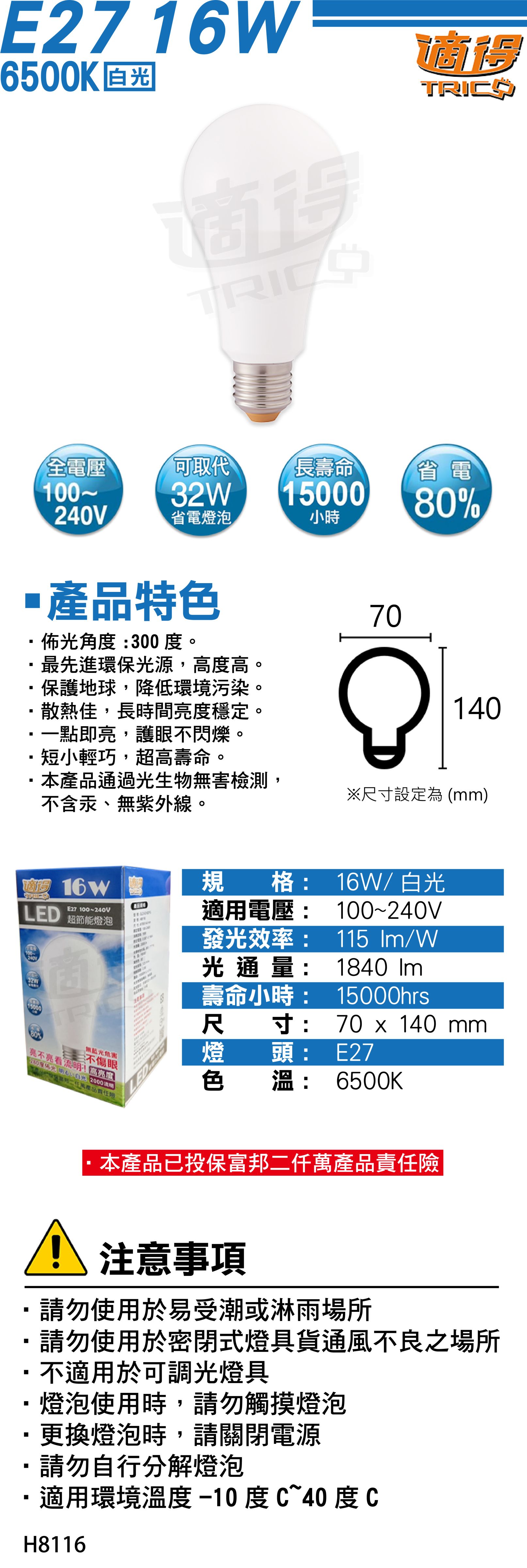 【適得】LED 16W 超節能燈泡 (白)