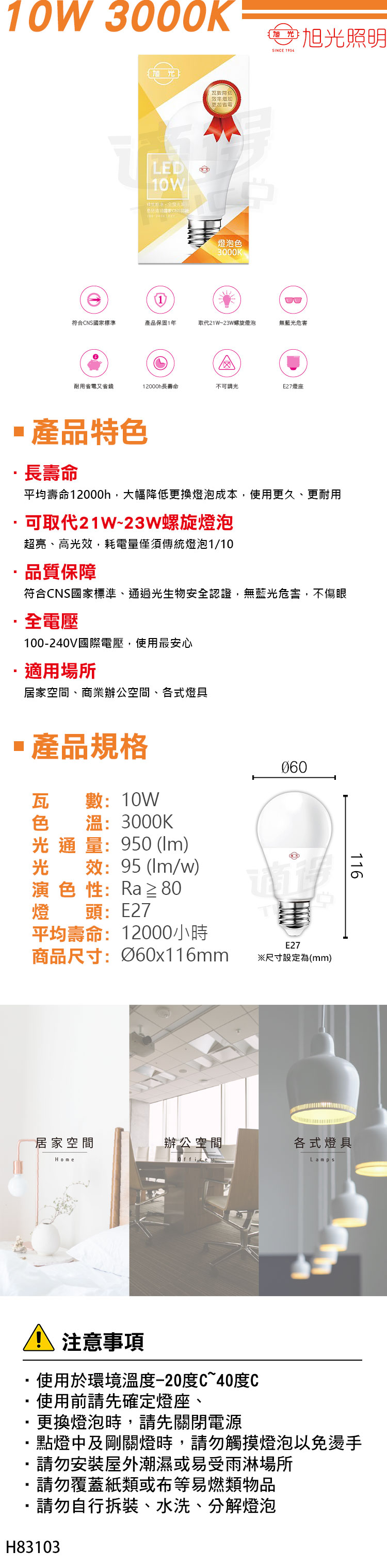1.平均壽命12000h,大幅降低更換燈泡成本,使用更久、更耐用