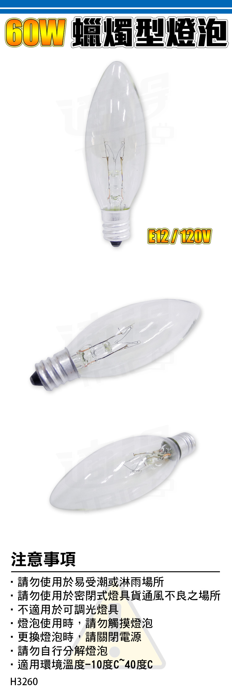 60W 蠟燭型燈泡 C7/E12 (清)