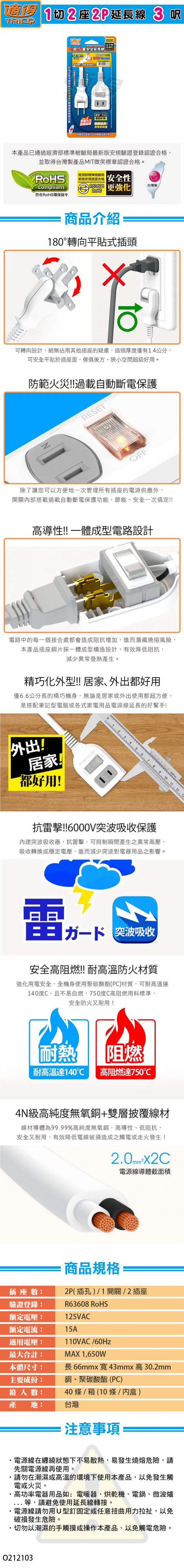【適得】1切2座2P延長線 - 3尺