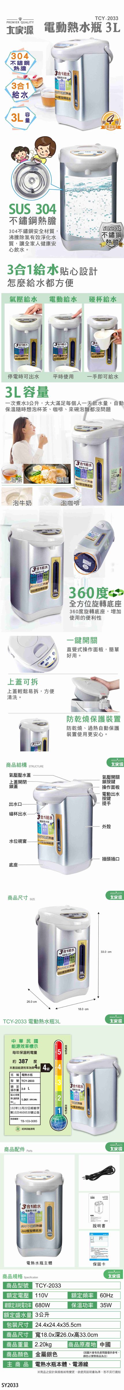 【大家源】TCY-2033 電腦/熱水瓶-3L