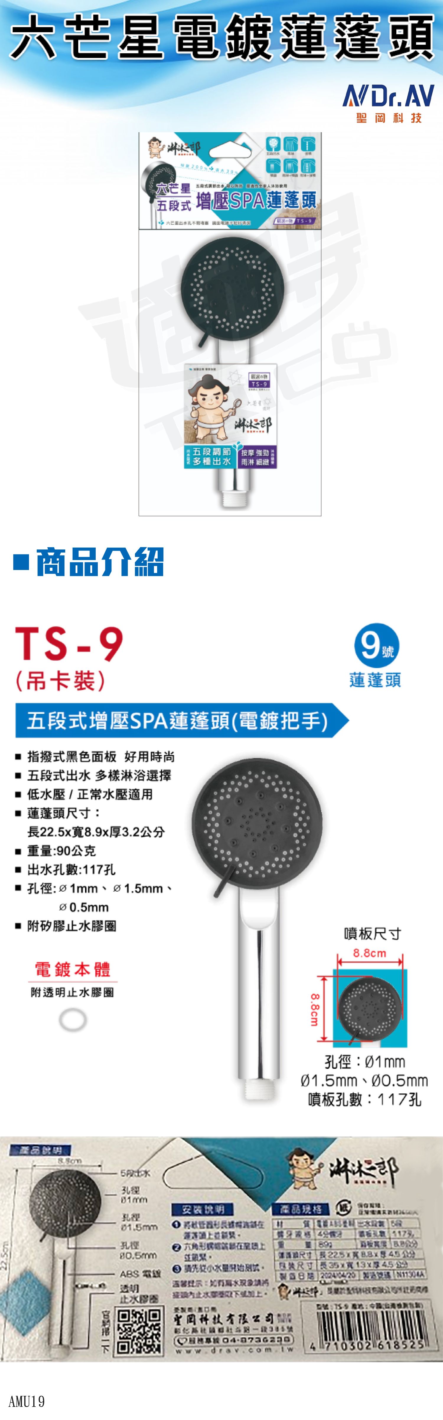 6. 蓮蓬頭尺寸:長22.5 x 寬8.8x 厚3.2cm