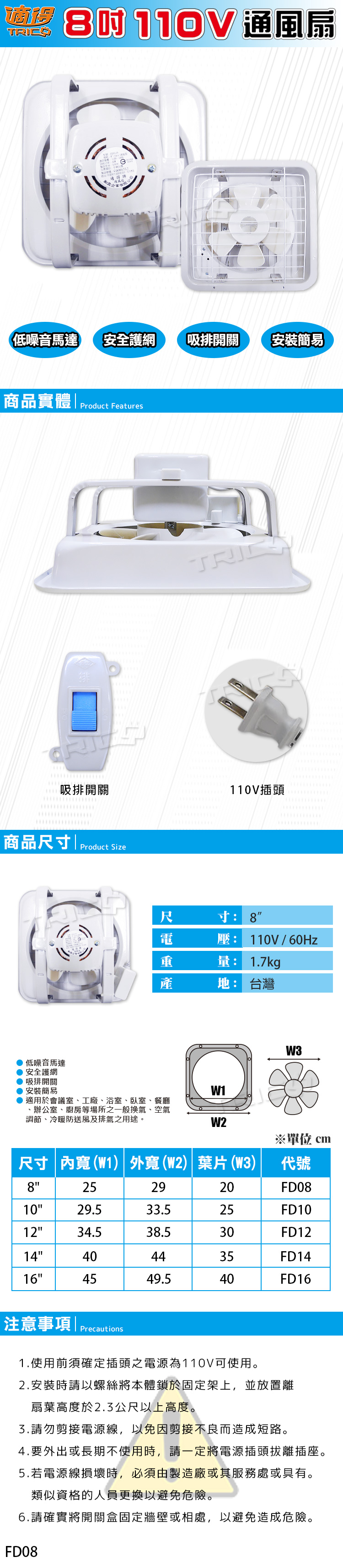 【適得】8吋/110V 通風扇