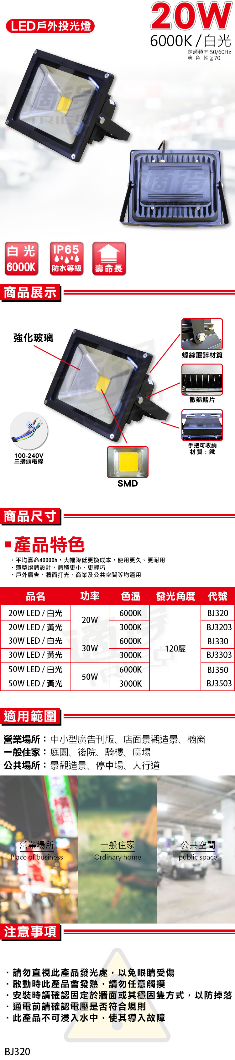 •戶外廣告、牆面打光、商業及公共空間等均適用