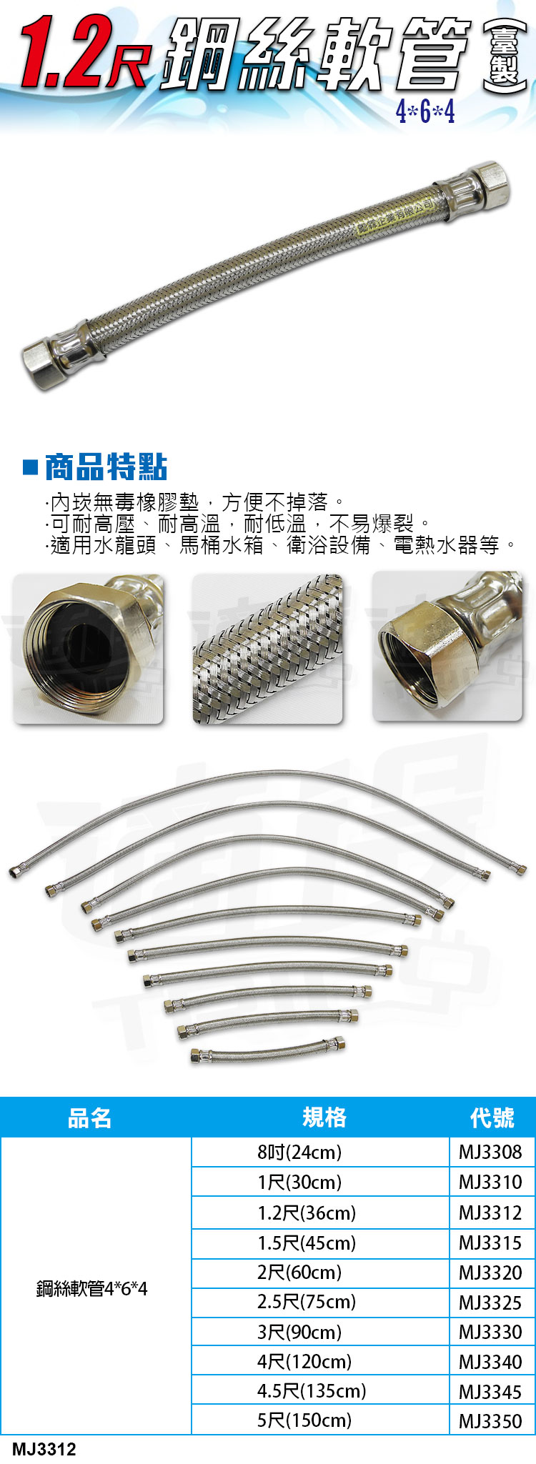 1.2尺 鋼絲軟管4*6*4 (臺製)