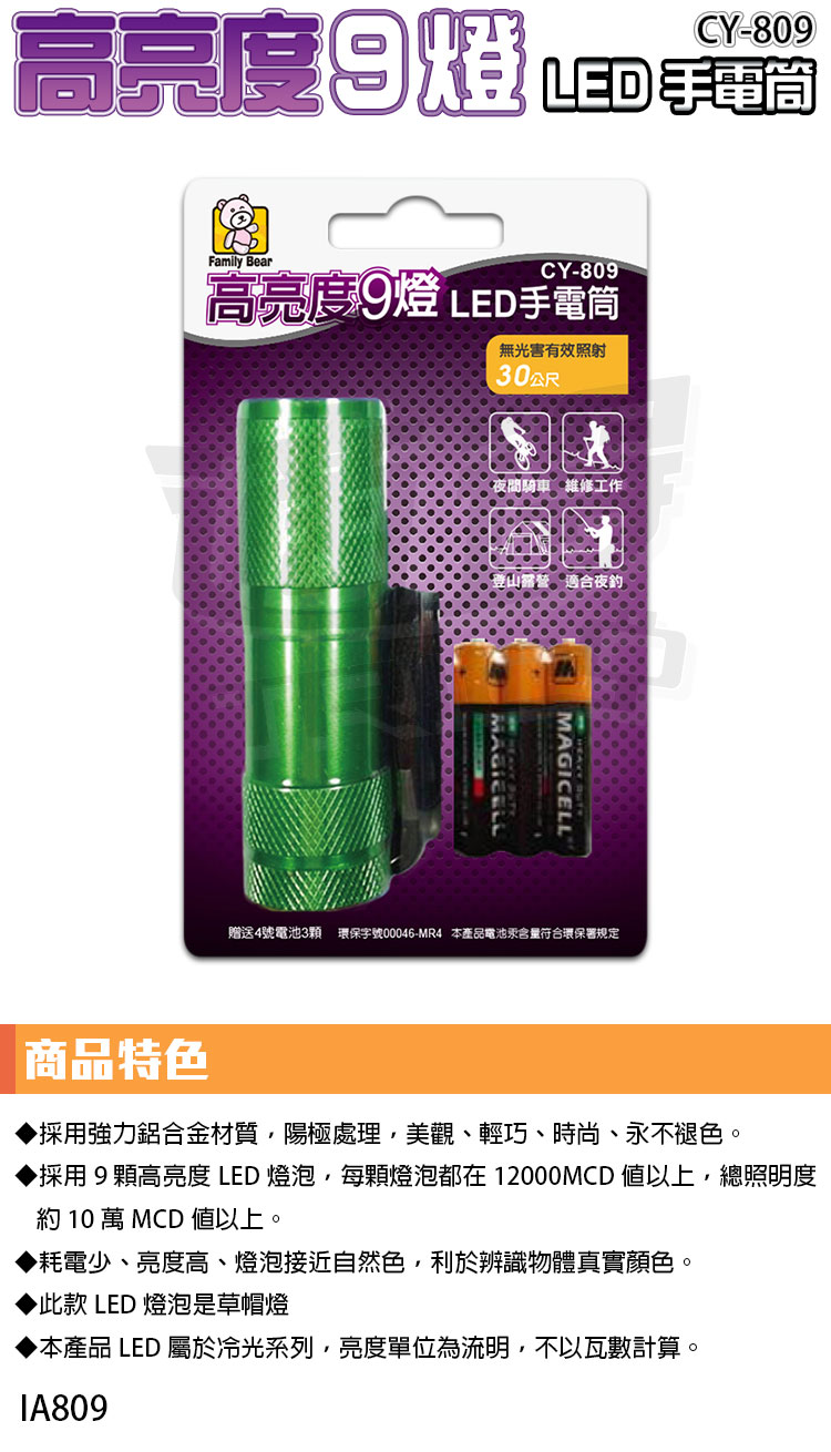 【熊讚】CY-809 高亮度9燈LED手電筒