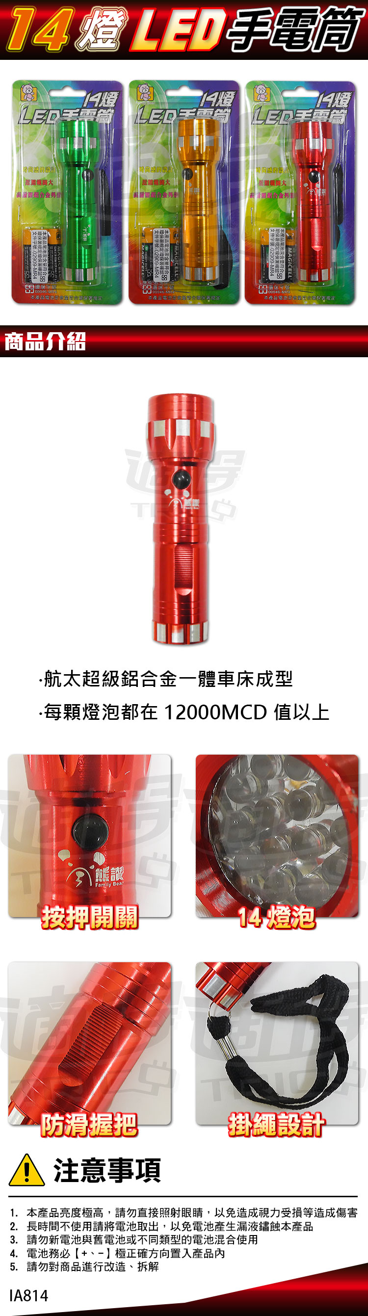 【熊讚】CY-814 14燈LED手電筒